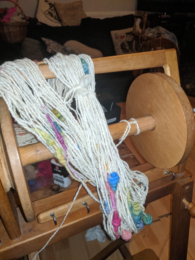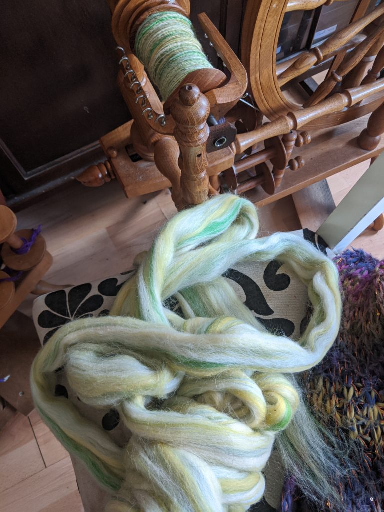 I’ve been spinning for many years, and have demonstrated spinning at events such as Ditchling Museum of Art + Craft, Saddlescoombe Farm, Ardingly spring show, and more. I am based in Brighton, East Sussex, UK.