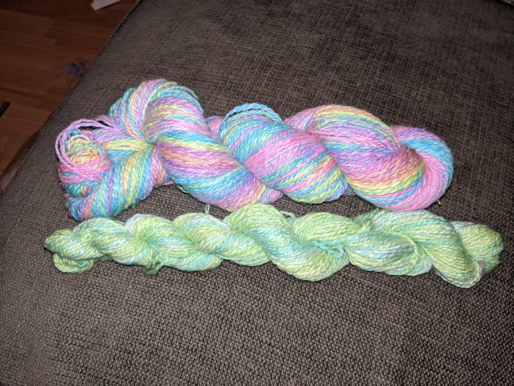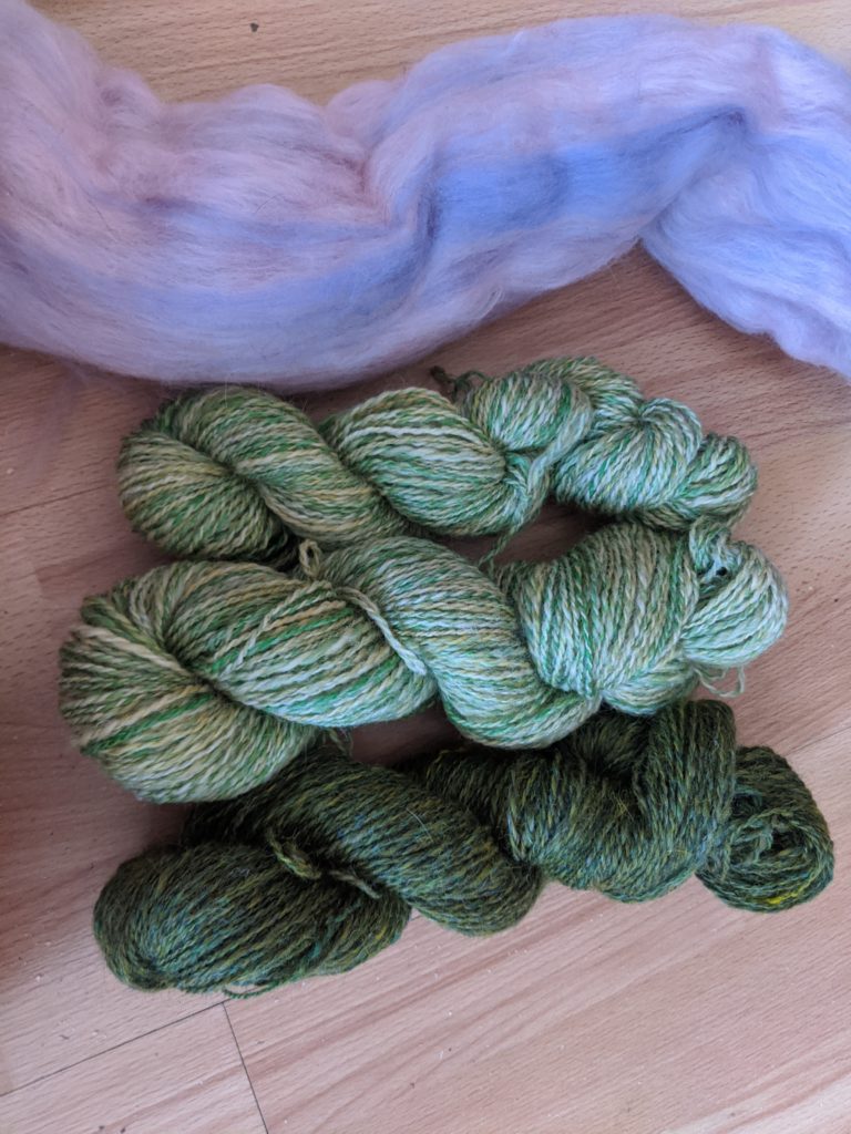 Examples of handspun yarn — perhaps not beginner level! But an idea of what you could start on the road to!