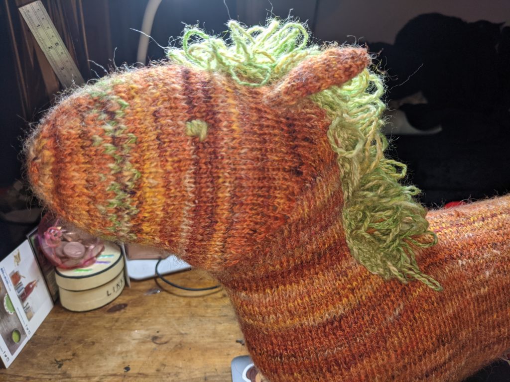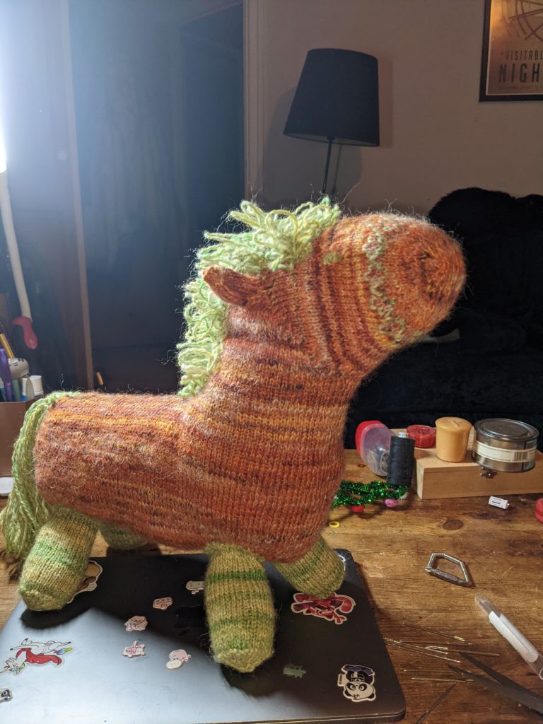 Pony knitted with previous yarns