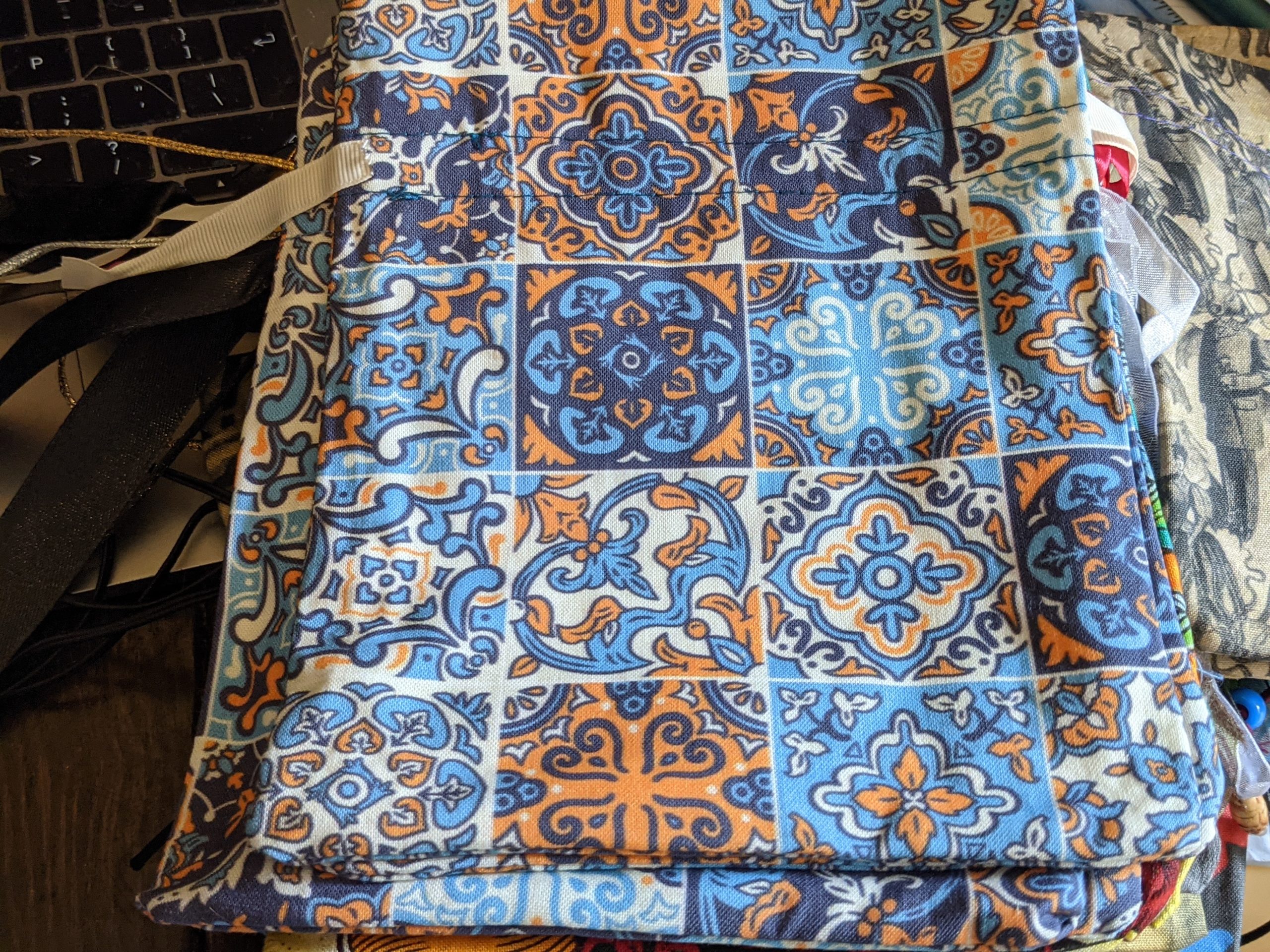 There are limited amounts of each design and you can see what’s remaining by selecting options above Please note: as the patterns vary they may not be cut exactly as the bag you view, however, all bags already exist! So Please ask me if you’d like to see a final picture before you buy. Each bag has a contrasting or complementary lining and all are made of 100% cotton (excluding trimmings!)